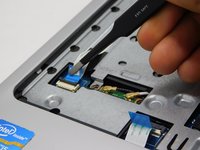 Use a Jimmy tool to slide between the keyboard and top panel. Gently pop the tabs out of their slots and the keyboard will come loose. DO NOT PULL KEYBOARD OUT YET.