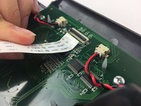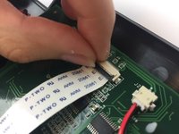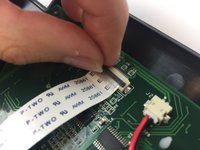 Disconnect the ribbon cable from its insulation-displacement connector by flipping up the black plastic clip.