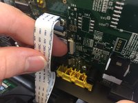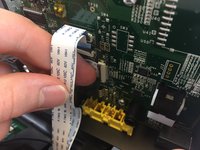 Disconnect the three ribbon cables from their insulation-displacement connectors by flipping up the black plastic clip.