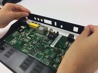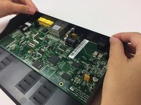 The Iris WG4K's motherboard is housed within the lower case of the device. The motherboard contains parts necessary for powering the device and connecting the device to local networks via ports.