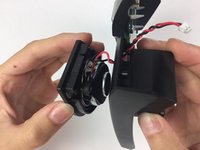 • Once both speakers have been unclipped, gently pull the wire through the housing .
