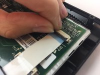 Disconnect the two ribbon cables from their insulation-displacement connectors by flipping up the black plastic clip.