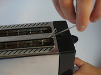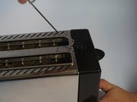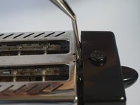 Remove any foreign objects that may be located inside the toaster. After all objects are removed, turn the toaster upside down.