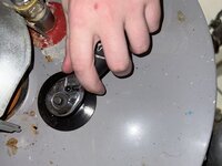 Use the socket wrench to loosen the old sacrificial anode rod, and physically extract it from the tank.