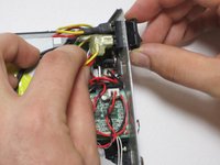 Take out the fan and its cords, by pulling it outward from its cavity within the device.