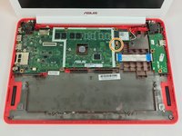 Using the plastic opening tool, lift up on data cable for the daughterboard to remove it from the device.