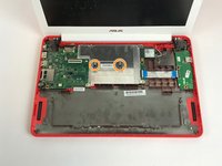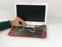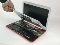 Gently wedge the spudger in between the bottom of the device and the keyboard, and carefully pry the cover open. Then, carefully lift up on keyboard.