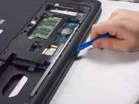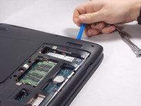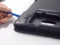 Use the blue opening tool to gently separate the back panel by loosening it on all sides to ease the outer shell of the laptop until it separates.