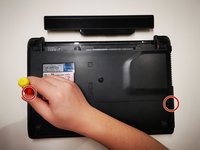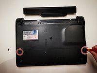 • Remove the two screws on the bottom of the laptop using a Phillips #0 screwdriver.