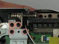 Remove the eight black 4mm Phillips #1 screws holding display to laptop base.