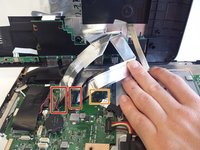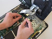 Flip up the locking latch holding the two ribbon cables with a plastic opening tool and pull the cables out.