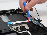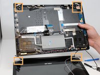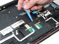 Carefully lift and slide the touchpad towards the hinges using an iFixit opening tool.