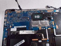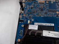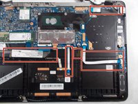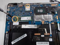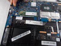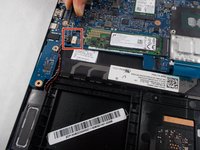 Next, lift up the battery connector from the laptop in the upper left side of the battery, using tweezers or spudger.