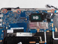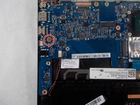 Locate the final screw that holds the motherboard in place, on the left side of the motherboard near the middle.