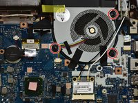 Remove the second fan by unscrewing the three black screws circled in the picture in red.