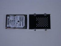 Locate the metal hard drive bay in the bottom left corner of the laptop.
