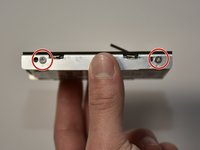 Remove the back casing being held on by the one single screw. First lift the casing at the edge where the screw once was, then carefully lift at the rest of the edges to loosen the casing. Pull the casing towards the edge where the screw was.