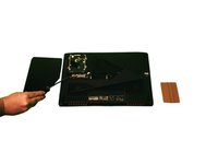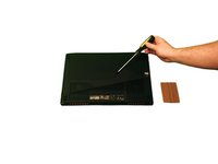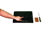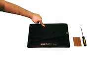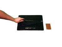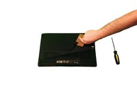 With a plastic pry tool, carefully pry open the cover on the bottom of the laptop starting where the screw was located.