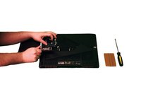 Using a Phillips #0 screwdriver, take the 2 mm screw that was holding down the cover and screw it back into the opening on the cover.