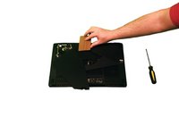 Using a Phillips #0 screwdriver, unscrew the one 2 mm screw that is holding down the compartment cover on the bottom of the laptop.