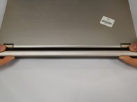 • Flip the device so that the laptop will open away from you to remove the hinge cover behind the screen.