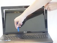 Insert the plastic opening tool into the crack where the plastic of the screen's frame meets the shell at the top.
