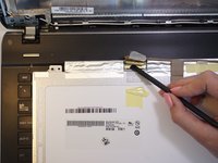 Peel the yellow tape and then the metallic tape holding the screen's connection to the computer.