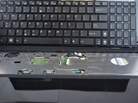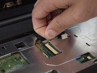 Lift the keyboard enough to expose the two ribbon connectors (LCD flex cable and flex band).