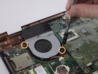 Remove the two 4 mm Phillips head 5 mm long screws from the fan using the screwdriver.