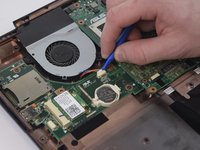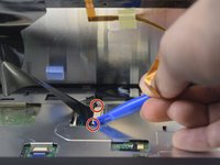 Use the Plastic Opening Tool to unplug the blue cord on the Motherboard.