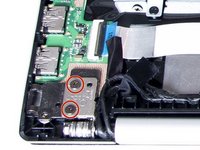 Remove the two screws securing the left hinge to the I/O board.