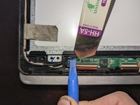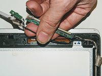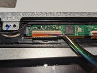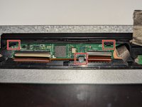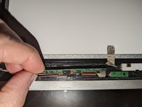 Peel off the three pieces of black tape securing the display cable to the motherboard.