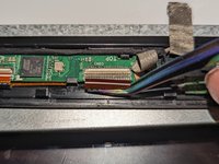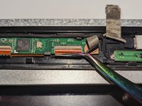 Remove the black tape securing the keyboard ribbon cable to the display connector.