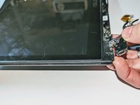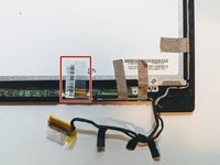Flip the touch screen assembly over and peel the clear tape covering the LCD connector off the LCD panel.
