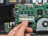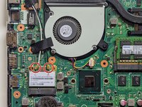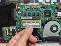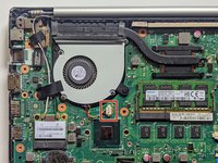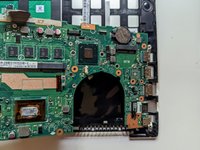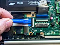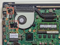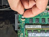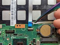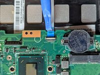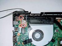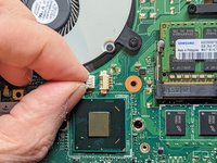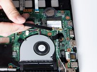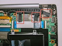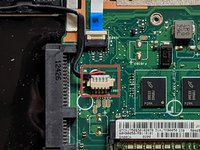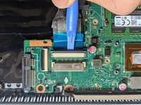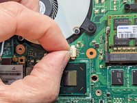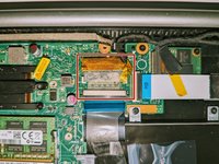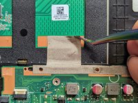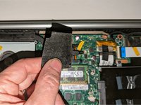 Peel off the three pieces of black tape securing the display cable to the motherboard.