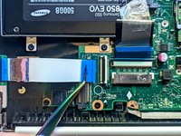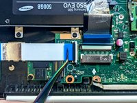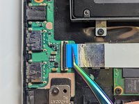 Remove the black tape securing the keyboard ribbon cable to the display connector.