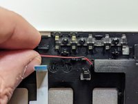 Disconnect the ribbon cable connecting the LED daughterboard and the motherboard by lifting the white tab on the LED side of the cable.