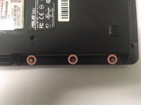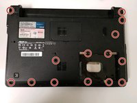 • Remove all screws located on the bottom plate of the laptop, beginning with the three located underneath the disc drive.