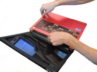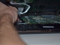 Lift palm rest and unplug keyboard cable and touchpad cable using tweezers. After these two cables have been unplugged you can remove the keyboard cover panel.