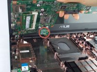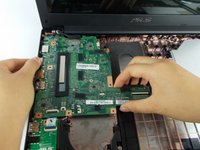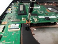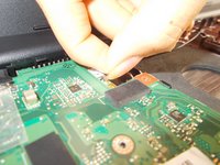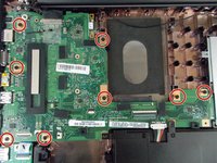 Remove the Phillips #0 screws securing the motherboard to laptop.
