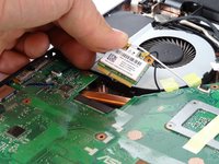 Pull out WiFi from below the cooling fan by lifting the edge nearest to the fan and sliding it towards the fan.