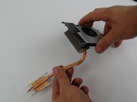 Remove the five 4mm screws (with a Tri-wing Y1 screwdriver) that are both connecting the fan and motherboard.