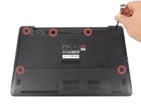 Remove the six 12mm screws located at both the battery area and the bottom panel, with a Tri-wing Y1 screwdriver.