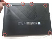 • Use a Phillips #00 screwdriver to remove the six 5 mm screws on the back case of the laptop.