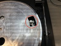 While the tone arm is secured, use your left hand to slowly spin the platter 10 times clockwise.