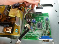 Remove the display cable located at the top of the circuit board by pulling it out towards the top of the monitor.