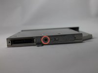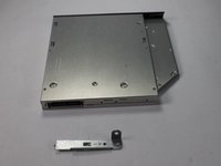 Face the side of the DVD drive that connects to the laptop and remove the 3mm screw with a Phillips head screwdriver.