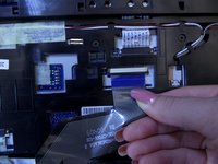 Using a spudger or your finger, unlock the ZIF connector holding the keyboard ribbon in place by lifting the black locking lever.