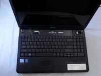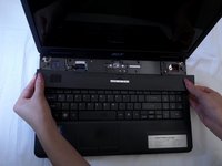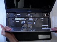 Pinch the edges of the plastic covering above the keyboard, and pull away from the laptop until the covering pops off.
