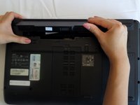 Flip your laptop on its back so the battery is facing up and the hinges are facing away from you.